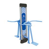 使用方法:面對器材,雙手握緊手柄,雙腳站在踏板上,腰部發力帶動下肢做左右搖擺式運動。